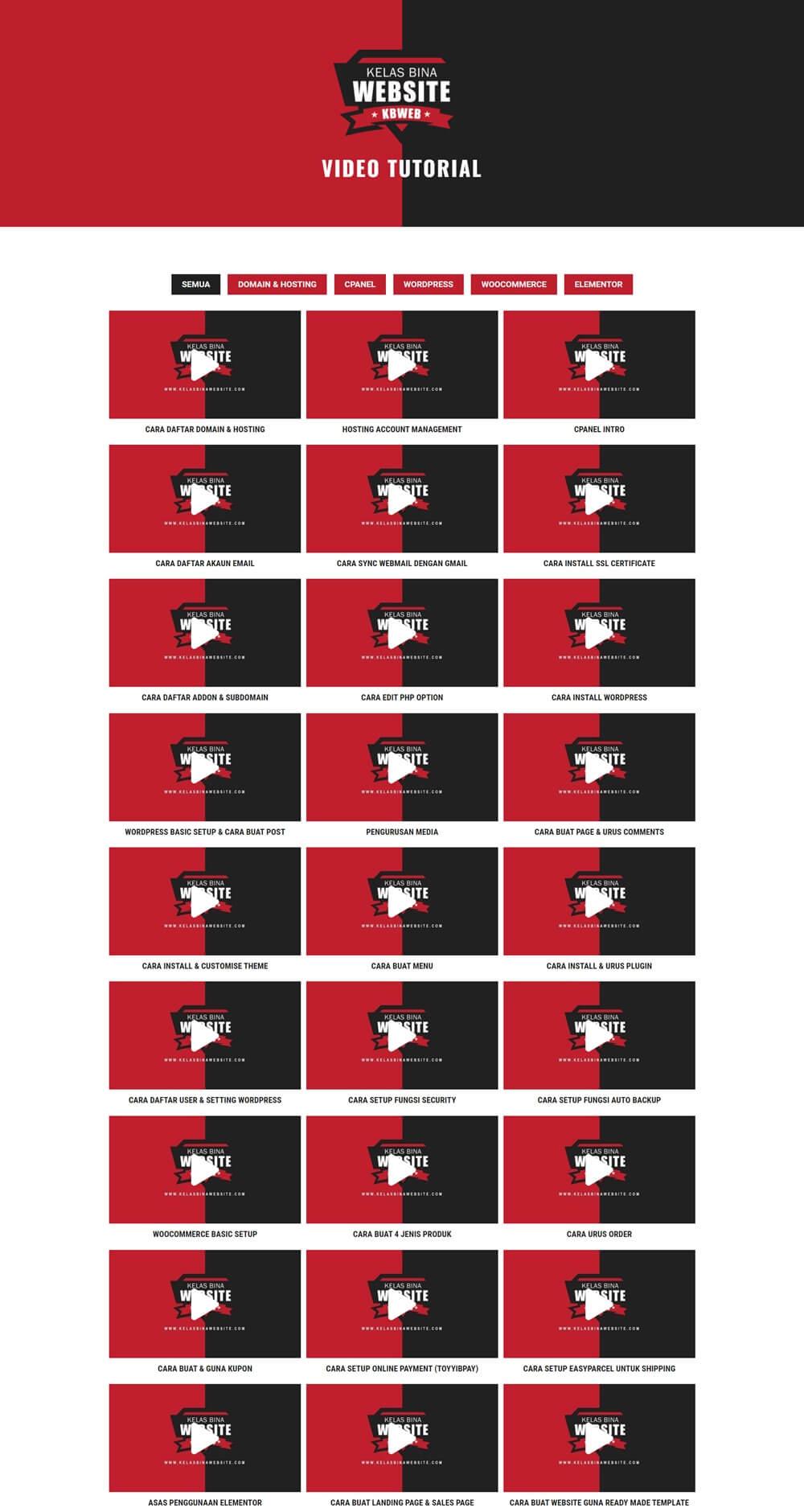 Akses ke video tutorial akan diberi kepada semua Alumni KBWEB secara PERCUMA selama-selamanya.